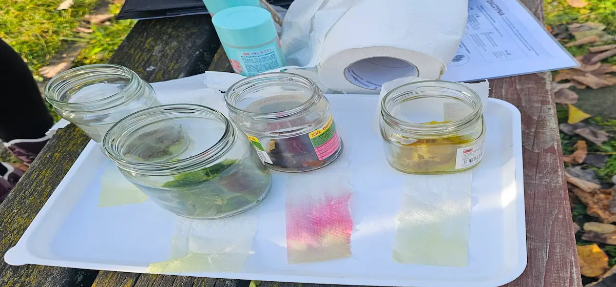 Padały komentarze: „ale śmieszne”, „ale dziwne”, „obrzydliwe… ale super!”.eksperymenty – balon z nasionami, szyszki, chromatografia barwników z liści, liście po zamrożeniu.